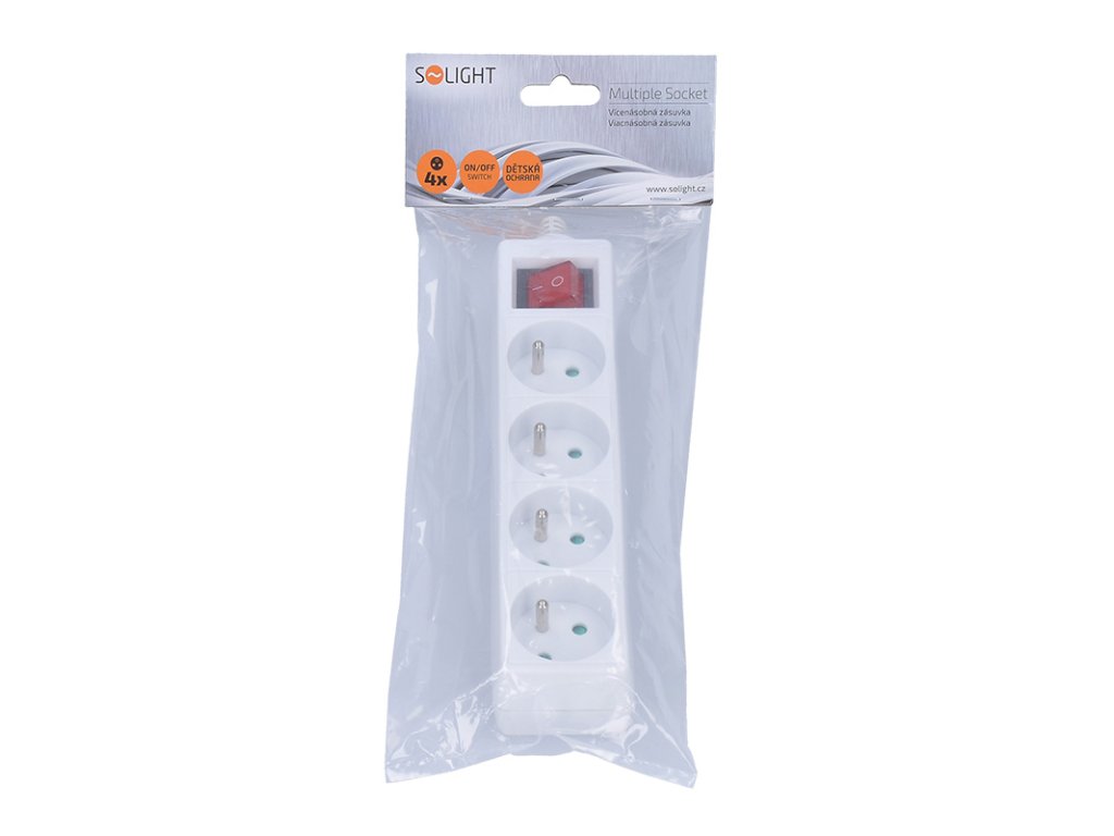 Solight vícenásobná zásuvka, 4 zásuvky, vypínač PZ14