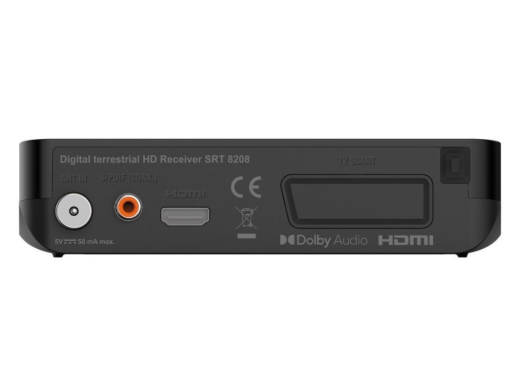 Set-top-box Strong SRT 8208 pro příjem pozemního vysílání DVB-T2. Toto kompaktní zařízení je vybaveno technologií HEVC pro zobrazení podporovaných HD kanálů ve vysoké kvalitě. Tento kompaktní HDTV přijímač Strong SRT slouží pro příjem digitálních volně šiřitelného vysílání televizních a rozhlasových stanic skrze vnitřní nebo venkovní antény. Vylepšený tuner podporuje vynikající příjem a stabilitu signálu. Přítomný USB port slouží k nahrávání vašich oblíbených TV pořadů, respektive následné přehrávání uložených souborů.