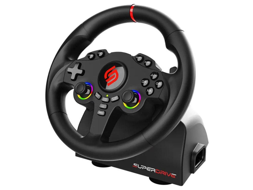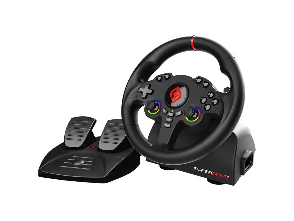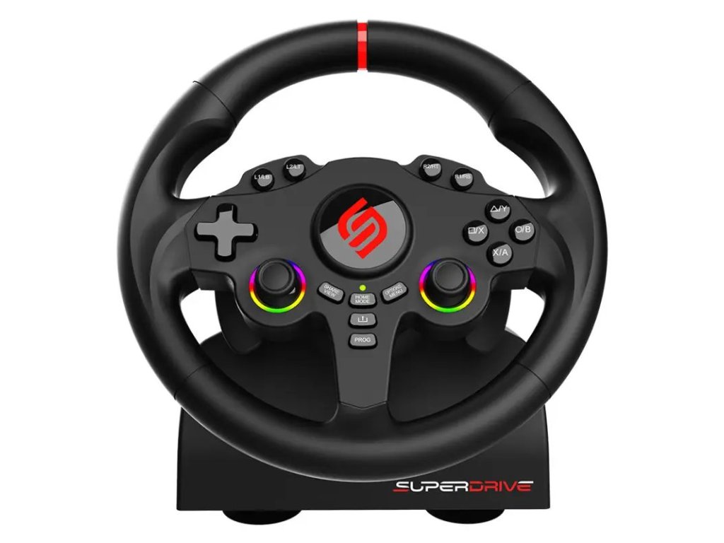 Herní volant SUPERDRIVE 220 RS je navržen pro maximální ponoření do závodních her na Nintendo Switch 2, Nintendo Switch, PlayStation 4, Xbox Series X/S, Xbox One a PC s operačním systémem Windows. Díky duálním páčkám se přizpůsobí každému hernímu stylu a typu hry, včetně simulátorů jako Farming Simulator nebo GTA.