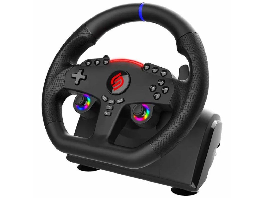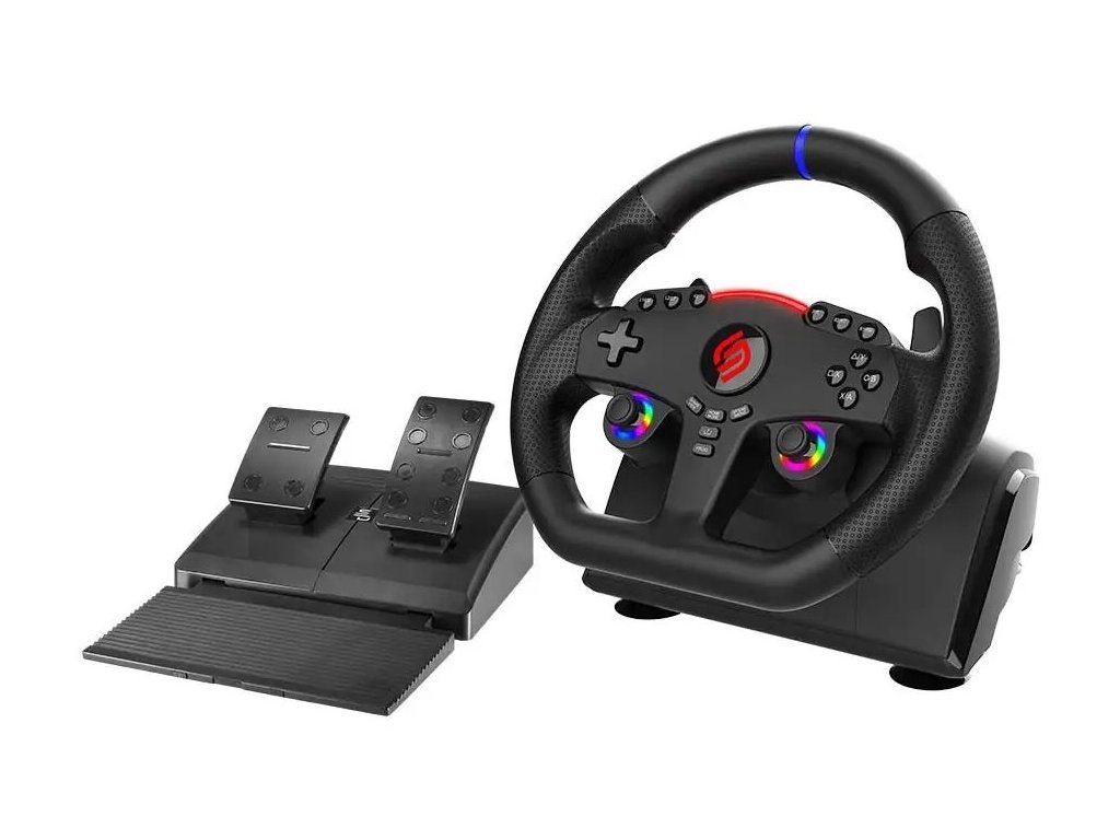Sada SUPERDRIVE 270 GT-5 nabízí kompletní řešení pro milovníky závodních simulátorů a arkádových her. Volant s průměrem 27 cm je vybaven duálními joysticky s integrovanými ovládacími prvky, programovatelnými tlačítky a 3 úrovněmi citlivosti, které umožňují přizpůsobení ovládání každému hernímu stylu.