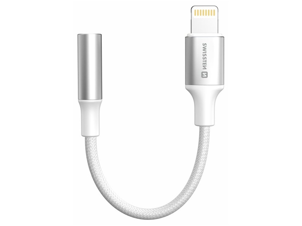 Swissten audio adaptér - textile lightning (samec) / 3,5mm aux 0,15 m bílý (nahrazuje 73501212) 73502314