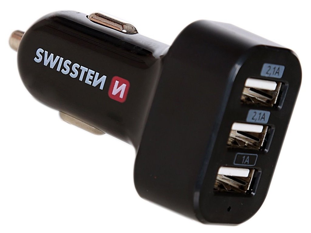 SWISSTEN 3 x USBUniverzální nabíječka do auta se třemi USB výstupy, která na cestách spolehlivě nabije jakýkoli mobilní telefon nebo tablet, a to i současně.
