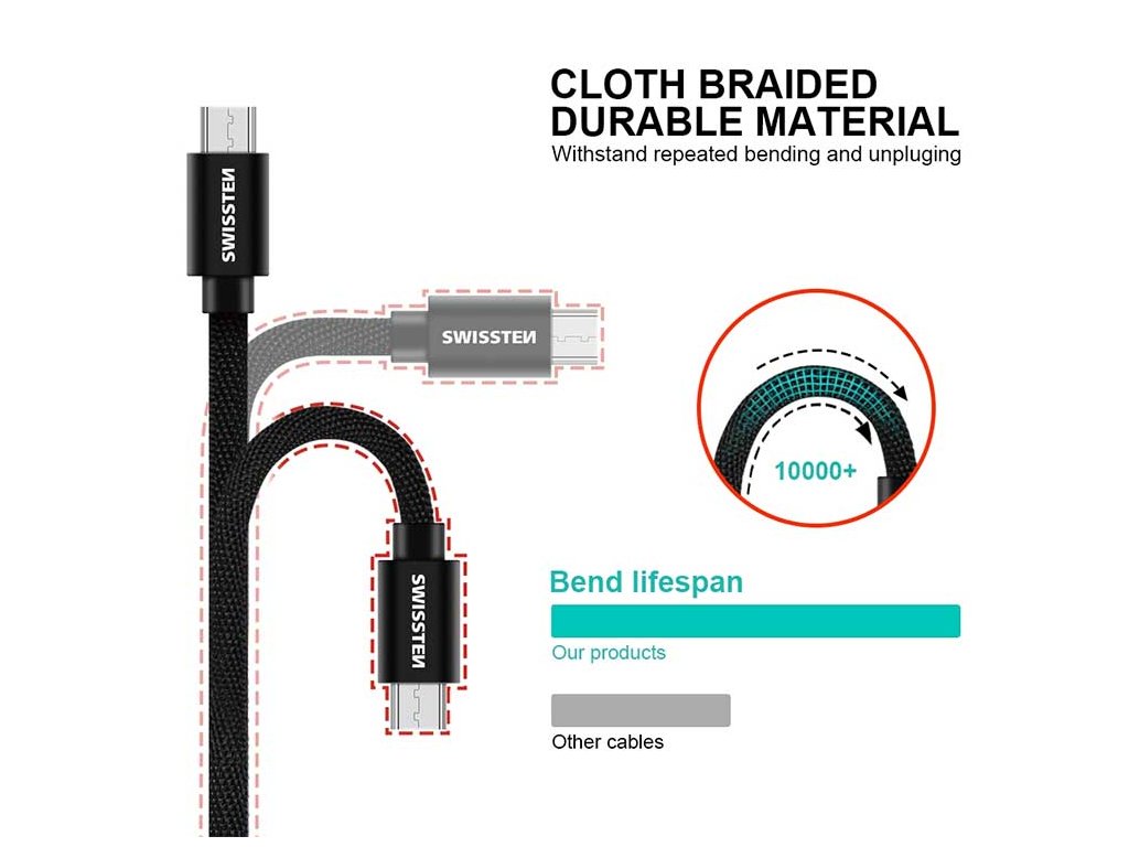 Swissten Data Cable Textile USB / Micro USB 1.2 m, grey 71522202
