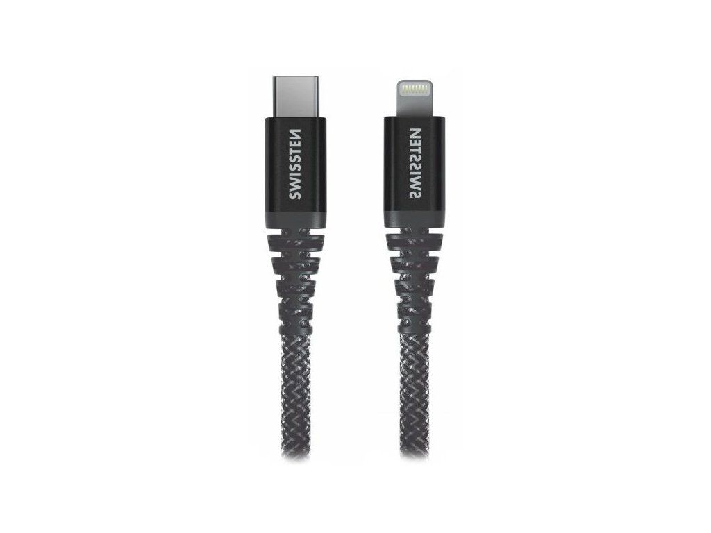 Swissten datový kabel kevlar usb-c / lightning 1,5 m antracit 71544010