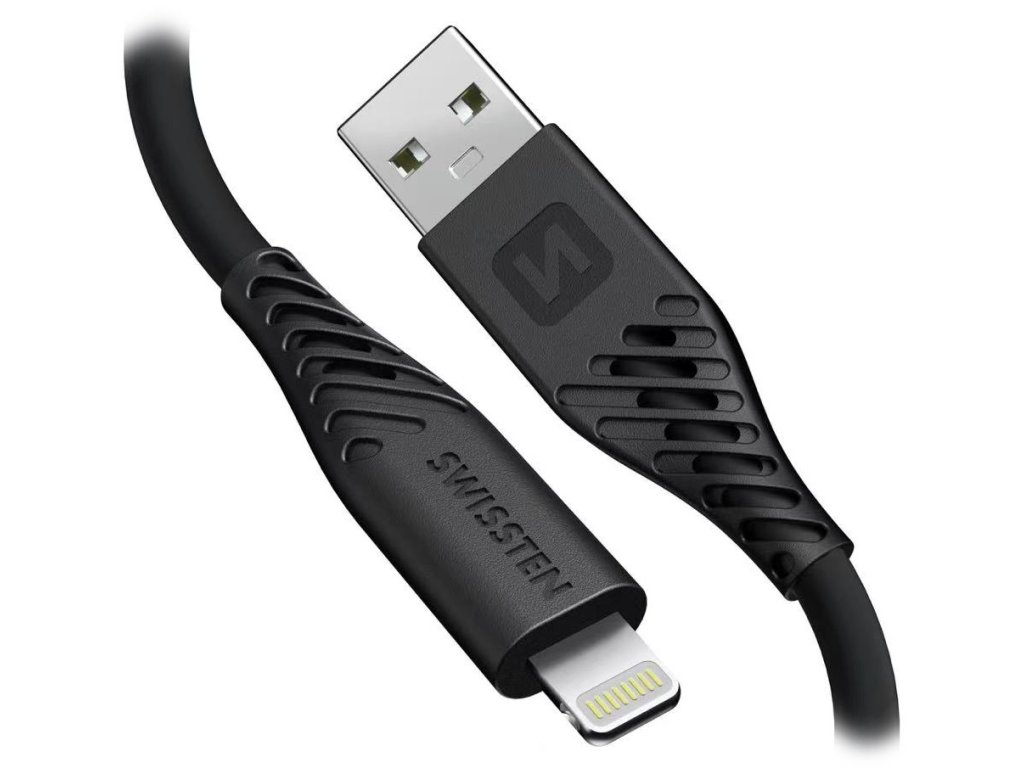 SWISSTEN SOFT SILICONE USB na Lightning 1,5 mDatový a nabíjecí USB na Lightning kabel podporuje kromě přenosu dat rychlostí 480 Mb/s také nabíjení proudem až 3 A a lze ho využít i pro technologii rychlého dobíjení s výkonem až 60 W. Kabel je vyroben z měkkého silikonu, díky tomu je flexibilní za všech podmínek a má vysokou odolnost proti ohybu.