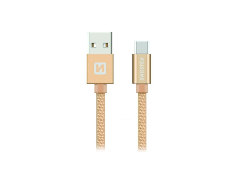 Swissten Datový Kabel Textile Usb / Usb-C 1,2 M Zlatý 71521204
