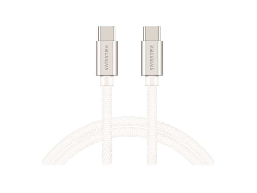 Swissten datový kabel USB-C / USB-C s textilním opletem, 2,0 M Stŕíbrný 71528202