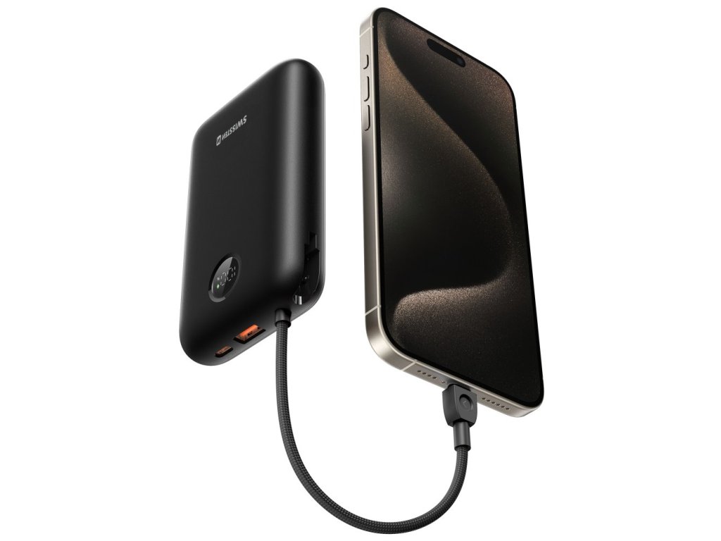 Powerbanka SWISSTEN VOLTBOX tak celkově nabízí port USB-C, port USB a integrované USB-C a Lightning kabely. Je tak vhodná pro napájení jak zařízení s operačním systémem Android, tak iOS. Kapacita 30 000 mAh je ideální pro použití a opakované nabití smartphonu, tabletu, případně drobné nositelné elektroniky jako například bezdrátová sluchátka apod. Praktický LED displej poskytuje informace o zbývající kapacitě baterie, takže hned vždy víte, kdy je čas na opětovné dobití.