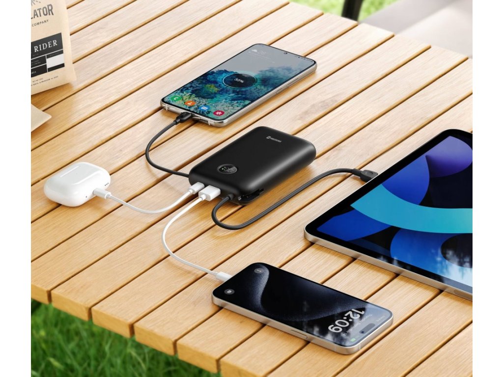 Powerbanka s kapacitou 30 000 mAh, navržená pro moderní uživatele, kteří potřebují nabíjet více zařízení současně. Nabízí jeden port USB-C, jeden port USB a integrované USB-C a Lightning kabely. Maximální výstupní výkon až 35 W umožňuje rychlé nabíjení telefonů, tabletů a menších notebooků. Potěší také praktický LED displej zobrazující aktuální stav nabití. Pro nabíjení samotné powerbanky slouží vstupní konektor USB-C. Vyrobena je z ohnivzdorného plastu, což výrazně zvyšuje její odolnost a bezpečnost.