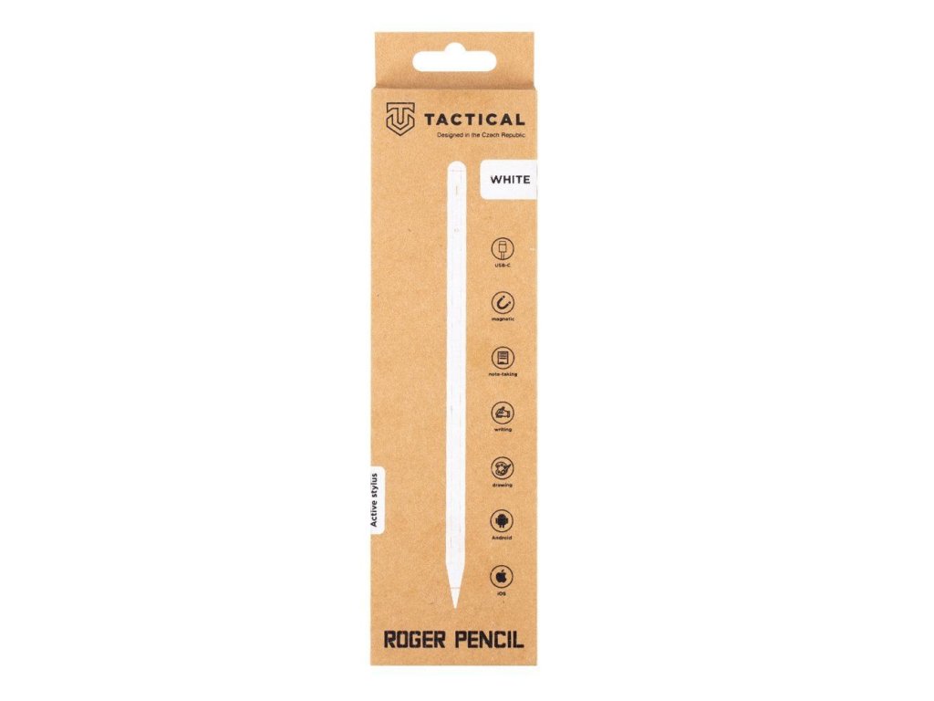 Popis produktu: Co si nepamatuješ, zapiš si! Co Tě napadne namaluj! A fantazii nech vyniknout, jako kdybys maloval na papír. Představujeme Tactical Roger Pencil. Dotykové pero se dvěma módy. První určený speciálně pro iPad a druhý mód pro ostatní tablety a telefony. Rychlost mrknutí okem Až tak rychle se Tactical Roger Pencil spáruje s Tvým zařízením. Soustřeď se na svou kreativitu a myšlenkové procesy. Nepřemýšlej nad zbytečnými věcmi. Mysli takticky! Přesnost S displejem je kamarád. Dotyk s displejem je na pixel přesný, nikde nic neutíká a reaguje s nulovou odezvou zpoždění. Při používání buď v klidu a ruku si klidně opři o dotykovou obrazovku. Displej na ní nebude reagovat (pokud to tablet podporuje). Reguluj tloušťkučáry a žádné ořezávátko k tomu nepotřebuješ. Zůstaň aktivní Tactical Roger Pencil pracuje na principu aktivní technologie. To znamená, že na kompatibilních zařízeních využijete přítlak a další funkce. Je naprosto intuitivní a dokonale simuluje psaní a kreslení na papíře. Jedinečný design Tak těžký, jak je potřeba. Dostatečně velký na to, aby simuloval skutečné pero. LED indikace Tě nenechá ve štychu a ukáže zbývající kapacitu baterie. Jednoduchým poklepáním pero zapneš, vypneš nebo přepneš iPad mód. Díky magnetickému tělu lze pero jednoduše přichytit k iPadu nebo k ostatním tabletům. LED barvy Tactical Roger Pencil Ti dá vždy vědět, co se děje. Zelené světlo znamená mód zapnuto a připraveno k použití na iPad se všemi funkcemi. Po dalším klepnutím na dotykové tlačítko se rozsvítí modré světlo. To aktivuje univerzální mód. Nyní můžeš pero používat na jakémkoliv zařízení. Červené světlo signalizuje nabíjení. Po úplném nabití se červené světlo vypne. Neodolatelně odolný U nás v Tactical dbáme na to, aby věci něco vydržely. Dotykové pero v této kategorii nabízí jen to nejlepší. iPad mód, aktivní technologii, luxusní hliníkovou konstrukci, magnetický úchyt, vyměnitelný hrot s velice jemnou silou odezvy, který používají jen top modely na trhu a spoustu dalších funkcí. Nabízí inteligentní úsporný režim - to znamená rok bez starostí. A osmihodinovku v práci dáš na jedno nabití. BE ECO My v Tactical máme rádi přírodu. Všechny naše produkty jsou balené do ECO krabiček z recyklovaného papíru tak, aby co nejméně zatěžovaly životní prostředí. Myslete takticky! KLÍČOVÉ VLASTNOSTI - Aktivní pero s módem pro iPad - Inteligentní úsporný režim - Vyměnitelný hrot - Rychlé párování - Magnetické uchycení - Ignoruje dotyk opřené ruky SPECIFIKACE - Model: LD100 - Nabíjecí port: USB-C - Výdrž baterie: 8 hodin práce - Inteligentní úsporný režim: 12 měsíců - Doba nabíjení: 80 minut do plného stavu - LED indikace: zelená, modrá, červená - Rozměry: 165,5 mm x 9 mm - Hmotnost: 13,5 g - Dotykové tlačítko na zapnutí/vypnutí - Kompabilita: iOS, Android, Windows - iPad mód: kompatibilní s modely od roku 2018 - Hrot (Pen tip): vyměnitelný, plastový - Magnetické uchycení: ano - Barva: bílá Co dostanete: ECO krabička z recyklovaného papíru 1 x dotykové pero, USB-C nabíjecí kabe, manuálDodatočné parametre