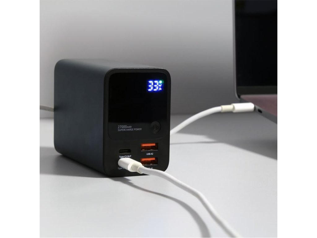 Balenie obsahuje: 1x PD903 Ultra Pro 27000mAh power banka, 1x PD50W kábel typu C na typ C (30 cm), 1x manuál