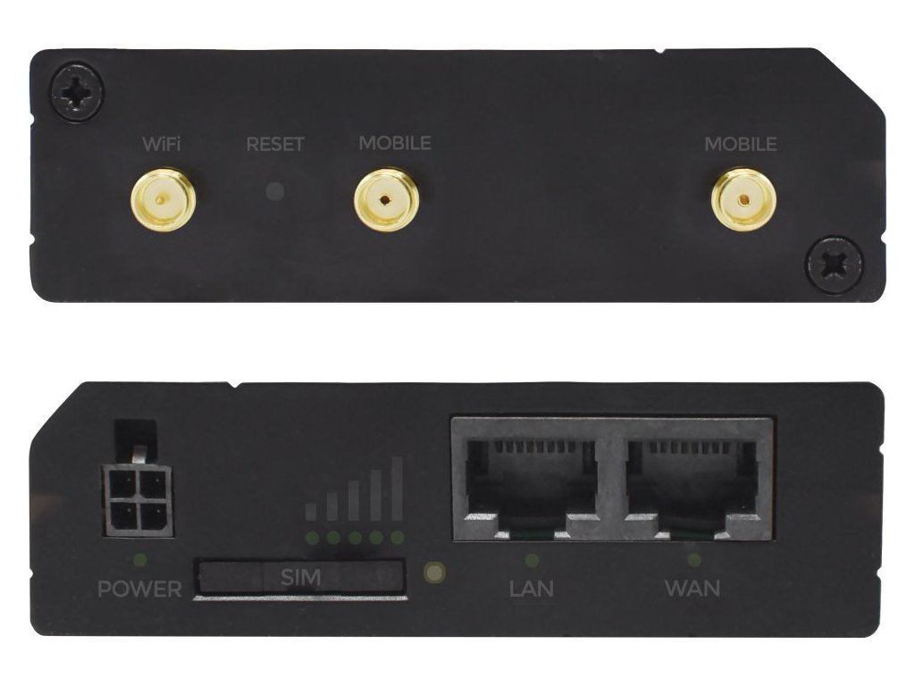 Porty: 2× RJ-45, 1× SIM slot (mini SIM, formát 2FF)