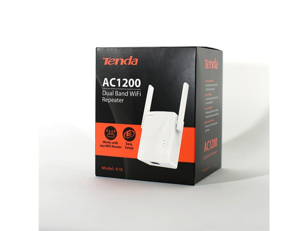 Tenda A18 - WiFi Range Extender AC1200 Dual Band, opakovač 1200 Mb/s, 1x LAN 100 Mb/s, WPS, 2x 2dBi 75011814