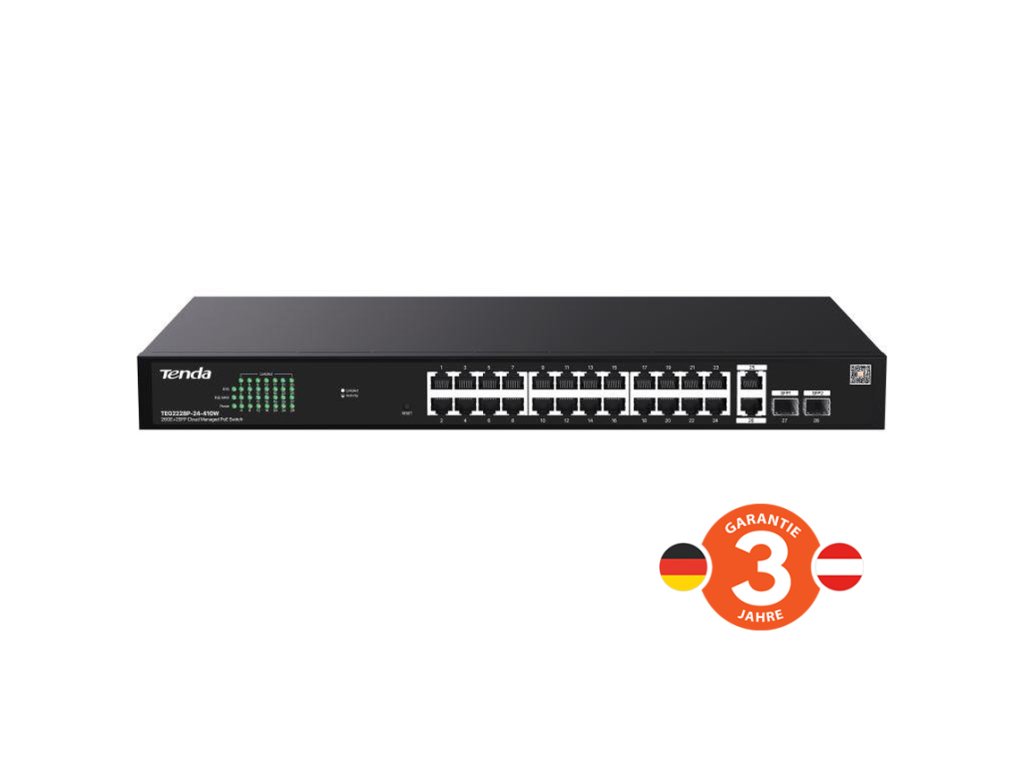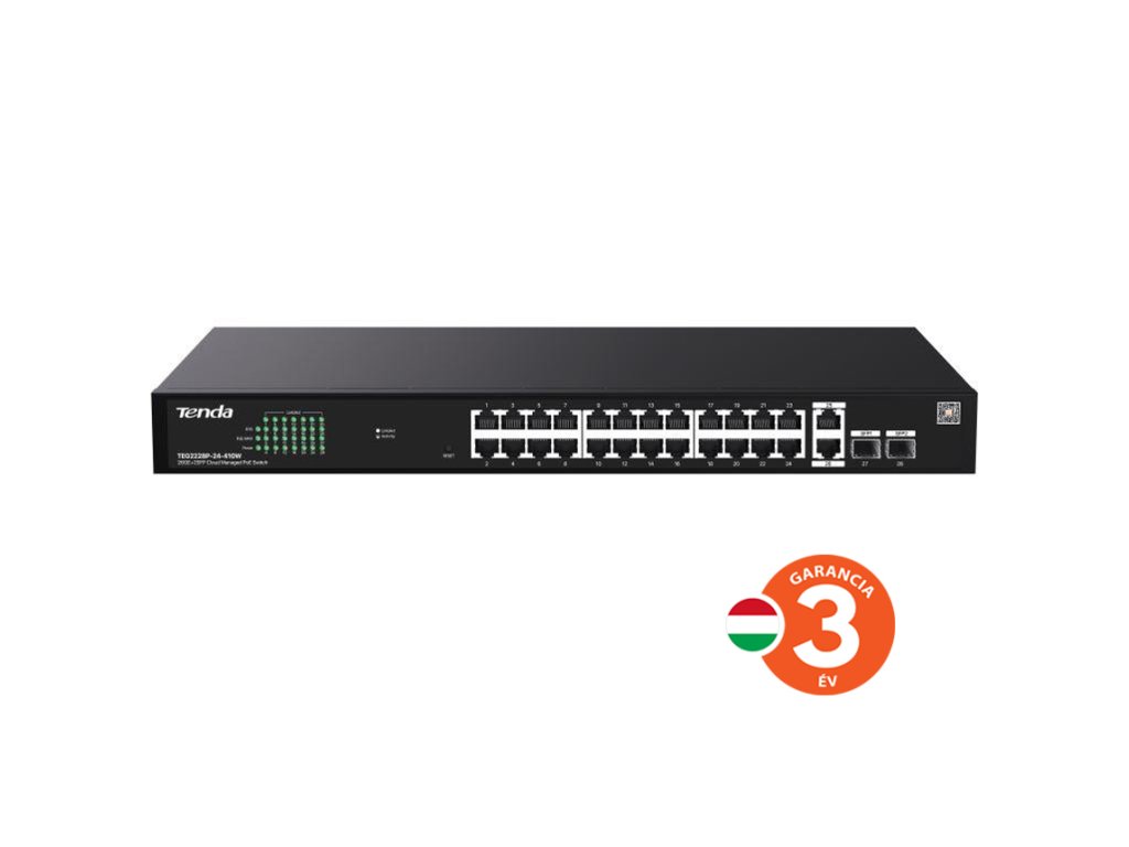 Tenda TEG2228P-24-410W Gigabit PoE+ Websmart L2 Cloud switch 370W, 24x 1Gb/s PoE+,2xRJ45,2xSFP, Rack 75012022