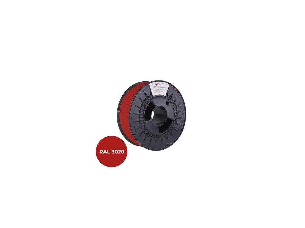 Tlačová struna (filament) C-TECH PREMIUM LINE, PLA, dopravná červená, RAL3020, 1,75mm, 1kg 3DF-P-PLA1.75-3020