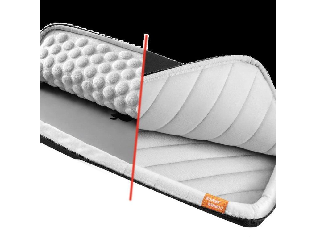 Váš notebook bude na cestách vždy v bezpečí vďaka patentovanému systému CornerArmor, zosilnenou ochranou hrán a rohov a vnútornou výstužou, ktorá absorbuje energiu pri nárazoch. Ide o úplne unikátnu technológiu, vďaka ktorej púzdro úspešne prešlo extrémnou vojenskou skúškou Military-Standard-Drop-Test. A tým ho žiadne iné neprekoná. Silná plyšová podšívka v hlavnej kapsi navyše chráni šasi notebooku pred poškriabaním.Padne ako uliate