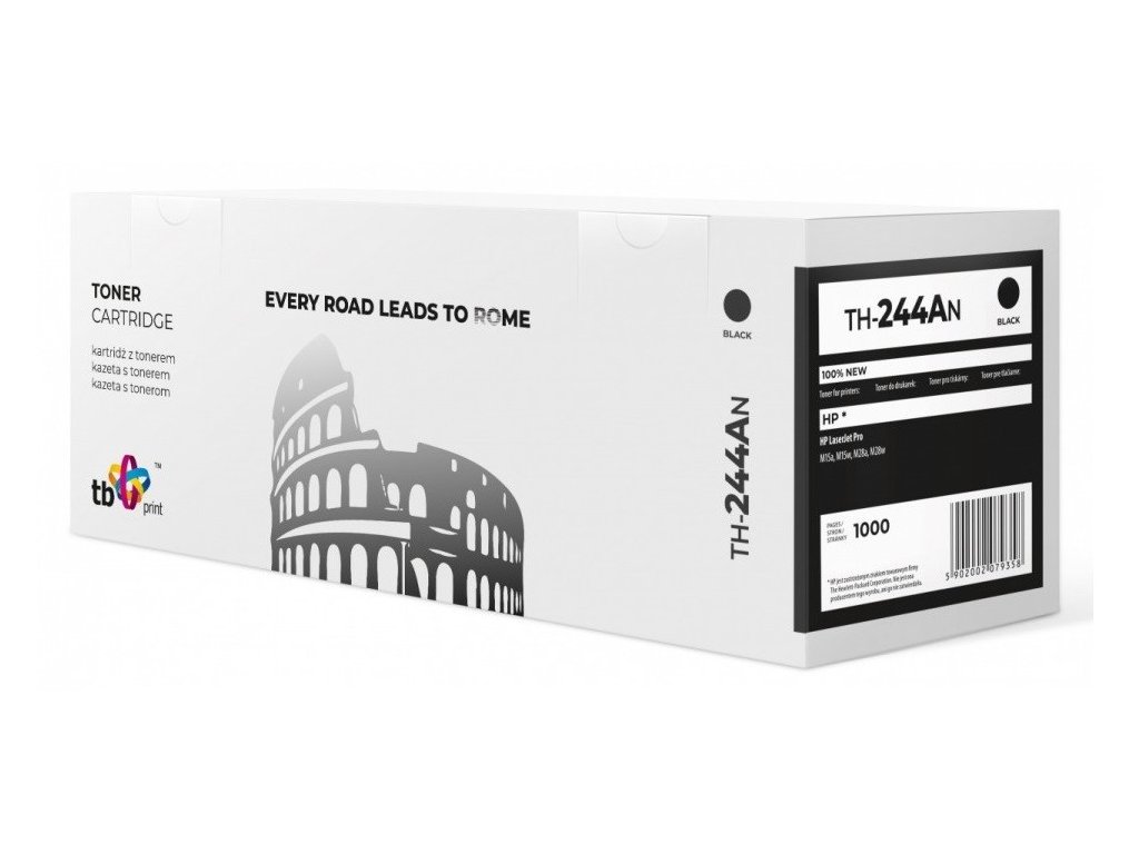 TB Print je dlouholetým výrobcem alternativních kazet pro celou řadu tiskáren světových výrobců. Kazety a tonery splňují nejpřísnější nároky na kvalitu i tisk samotný. TB Print je synonymum pro dokonalé věrný, ostrý tisk a to za stále atraktivní cenu. Typ (cartridge/toner): Toner Výtěžnost (stran): 1000 Chip: Ano Barva: Černá Kompatibilita s: HP CF244A Záruka Neomezená doživotní zárukaDodatočné parametre