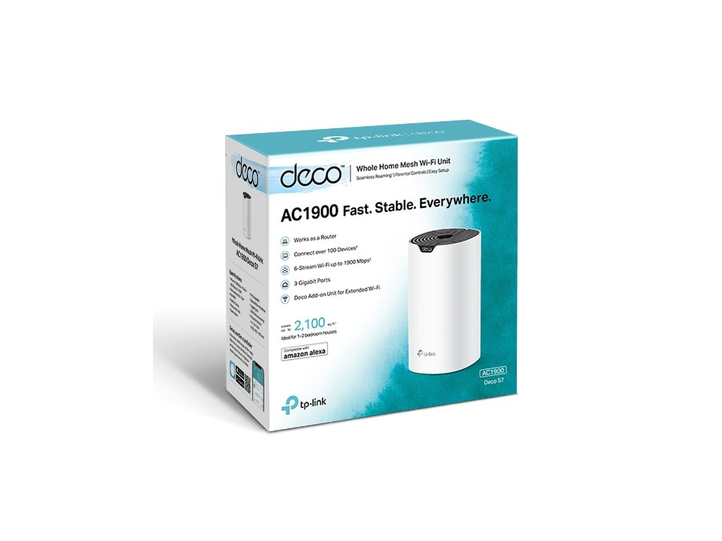 Deco S7 je výkonný Mesh systém AC1900 s Wi-Fi pre celoplošné pokrytie domácnosti. Deco S7 ponúka jednoduchý spôsob, ako zaistiť silný WiFi signál v každom rohu vášho domu, na ploche až 195 m2 (sada s 1 jednotkou). Bezdrôtové pripojenia a voliteľné chrbticové ethernetové pripojenie pracujú spoločne na prepojení jednotiek Deco, vďaka čomu bude vaša sieť rýchlejšia a zaistí neprerušované pripojenie všetkých zariadení.