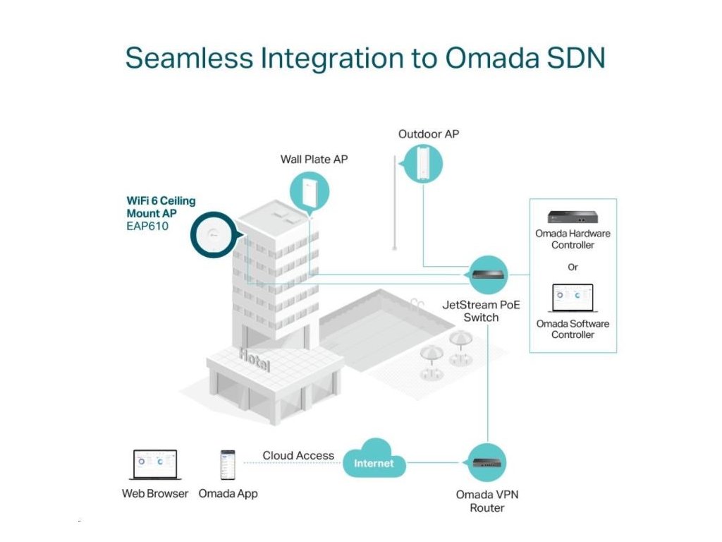 | Cloud Access | Áno, cez • OC300 • OC200 • Omada Software Controller • Omada Cloud-Based Controller |