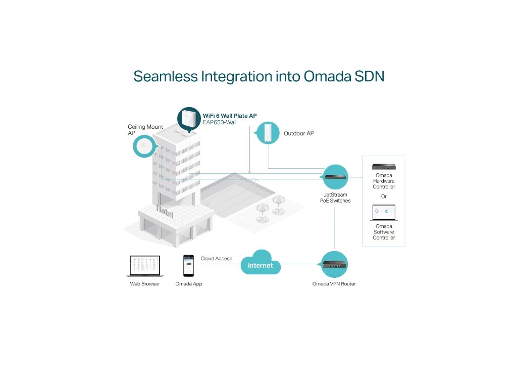 Centralizovaná správa cloudu: Integruje sa do Omada SDN pre cloudový prístup a vzdialenú správu.