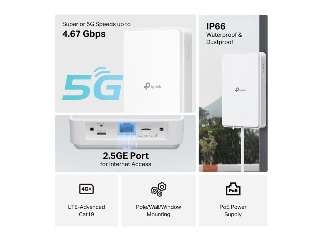 TP-Link NE200-Outdoor venkovní 5G, 4G LTE router (5G, 4G LTE,1x2,5GbE,1xnanoSIM) NE200-Outdoor