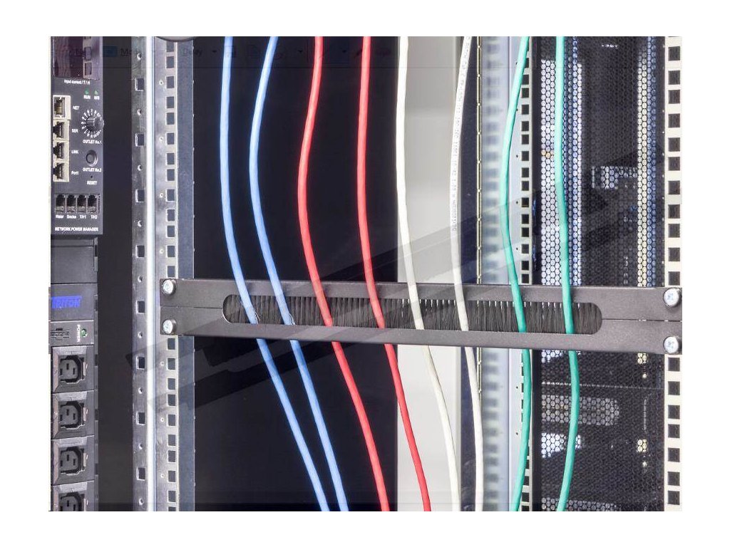 19" 1U priechodný panel, horizontálne delený, kefka, otvor 350 x 21 mm.príslušenstvo
