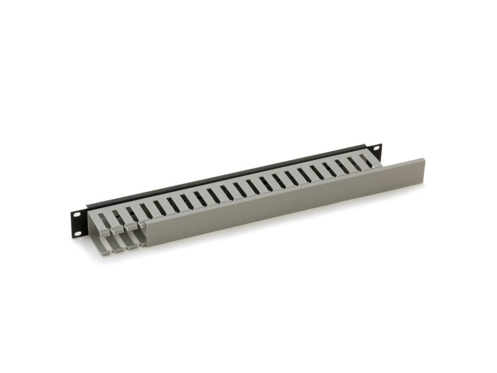 19" vyväzovací panel 1U, plastová lišta. Balenie obsahuje skrutka M6x16 4ks, plastová podložka 6,2 4ks, plávajúce matice M6 4ks.