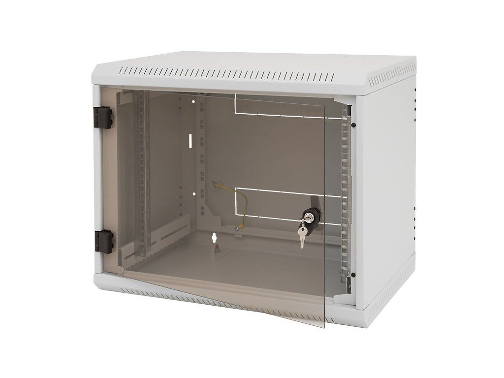 19" jednodielny nástenný rozvádzač s výškou 9U s krytím IP 30. Rozvádzač sa upevňuje priamo na stenu. Súčasťou rozvádzača sú dve posuvné vertikálne lišty. Kompaktný zváraný rozvádzač s celosklenenými dvermi s bezpečnostným tvrdeným sklom 4 mm. Na vyžiadanie celoplechové nebo perforované. Dovolené zaťaženie jednotlivých dverí je max. 10 kg. Minimálna hrúbka povrchovej úpravy je 65 m. Rozvádzače sú určené k inštalácií dátových a telekomunikačných zariadení a ich distribučných systémov. Rám rozvádzača a všetky oddeliteľné časti sú prepojené pomocou uzemňovacích káblov, ktoré musia byť riadne pripevnene a zasunuté do konektorov po celú dobu užívania rozvádzača. Na spodnej časti rozvádzača je umiestnená skrutka M8 ako hlavný uzemňovací bod. Káblové vstupy kryté vylamovacími záslepkami sú umiestene v hornej a spodnej časti zadnej steny rozvádzača, ďalšie sú na hornej a spodnej stene rozvádzača. Rozmery 500 x 600 x 495mm (v x š x h). Nosnosť: 80kg