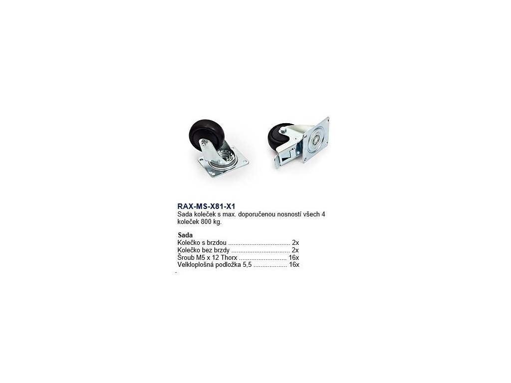 TRITON Sada 4 koliesok (2ks s brzdou, 2ks bez brzdy) max.nosnosť 800 kg RAX-MS-X81-X1