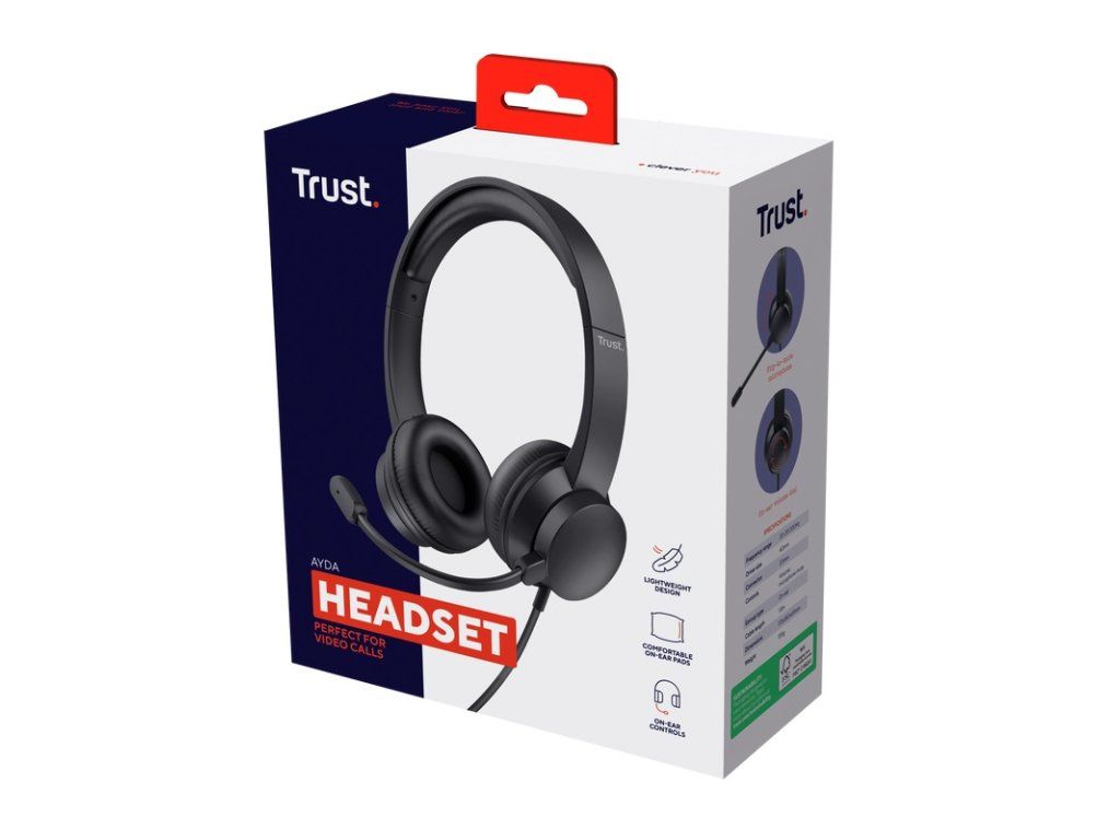 Trust Ayda náhlavní souprava k PC * flexibilní směrový mikrofon zaručuje jasnou a zřetelnou komunikaci Technické parametry Měnič: 40mm neodymový Frekvenční rozsah: 20Hz-20kHz Citlivost: 95dB Akustický tlak: 90dB Audio vstup: 3,5mm Typ připojení: drátové Délka kabelu: 1,8m Barva: černá Rozměry: 180x170x65mm Hmotnost: 134g Požadavky na systém: kombinované 3,5mm připojení pro sluchátka/mikrofon Záruka: 2 roky Odkaz na stránku výrobce: https://www.trust.com/en/product/25087-ayda-pc-headsetDodatočné parametre