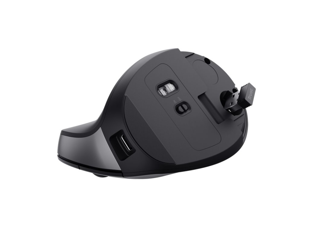 Trust Bayo II/Vertikálna/Optická/Pre pravákov/2 400 DPI/Bezdrôtová USB/Čierna 25145