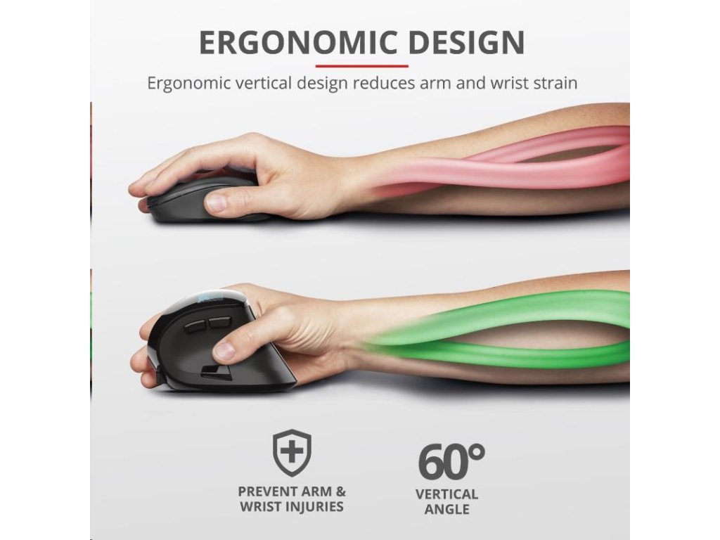 - Ergonomický vertikálny dizajn znižuje námahu rúk a zápästí