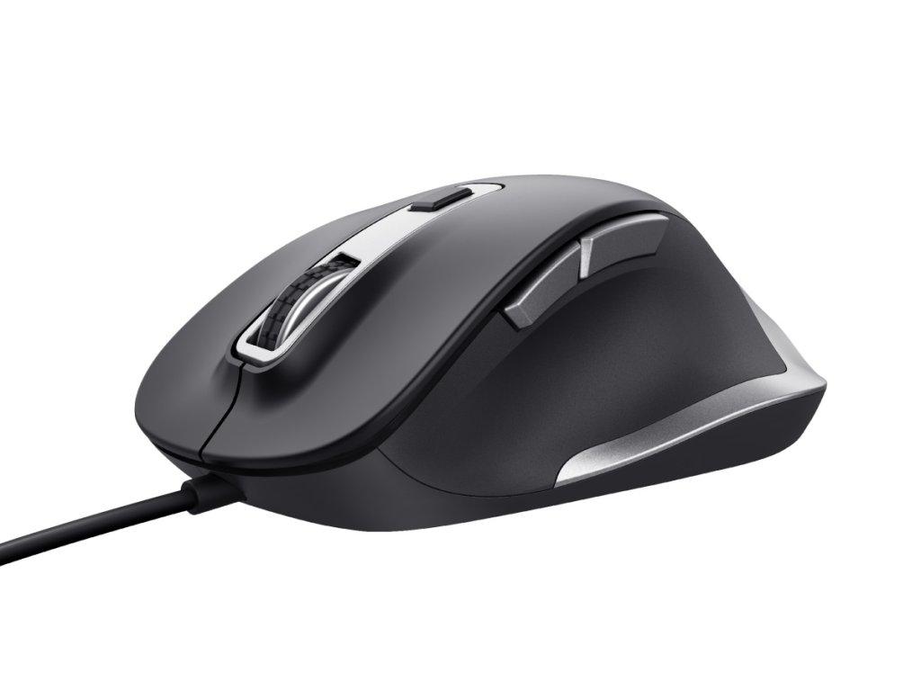 TRUST Fyda/Ergonomická/Optická/Pre pravákov/5 000 DPI/Drôtová USB/Čierna-strieborná 24728