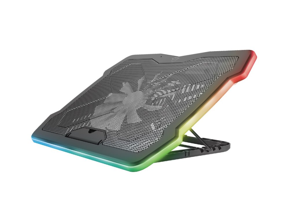 TRUST GXT 1126 Aura Multicolour-illuminated Laptop Cooling Stand. Vícebarevně osvětlený chladicí stojan, který udrží váš notebook v chladu i během těch nejnáročnějších her. Udržujte svůj notebook v chladu během horkých herních relací, zůstaňte v ergonomické poloze, abyste snížili zátěž na krk a záda. Doplňte svůj herní setup a zůstaňte v pohodě. Klíčové vlastnosti *Chladicí stojan s velkým 200mm ventilátorem pro chlazení notebooku *Upravte rychlost ventilátoru pro režim ticha nebo výkonu *Vícebarevné osvětlení doplňuje vzhled vašeho herního notebooku *Vyberte si z 5 různých barevných režimů (neon, duha, dýchání, nepřetržité, blikání, vypnuto) *Zlepšete ergonomii umístěním notebooku výše *Upravte úhel ve 4 krocích, až do výšky 210 mm *Horní deska z kovové síťoviny pro stylový vzhled a optimální proudění vzduchu *Pro jakýkoli notebook, až 17,3 palce Technické parametry *Max. velikost notebooku: 17'' *Max. hmotnost: 10 kg *Max. výška zdvihu: 20 cm *Včetně ventilátoru 200 mm *Rozměry: 26 x 421 x 312 mm *Celková hmotnost: 1000 g *LED barvy: Full RGB *Hladina hluku (rozsah): 25 dBA - 30 dBA *Rychlost otáčení: 450 RPM - 700 RPM *Průtok vzduchu: 13 CFM - 68 CFM *Počet ventilátorů: 1 *Velikost ventilátoru: 200 mm *Napájecí zdroj: USB Odkaz na web výrobce: https://www.trust.com/en/product/24192-gxt-1126-aura-multicolour-illuminated-laptop-cooling-standDodatočné parametre