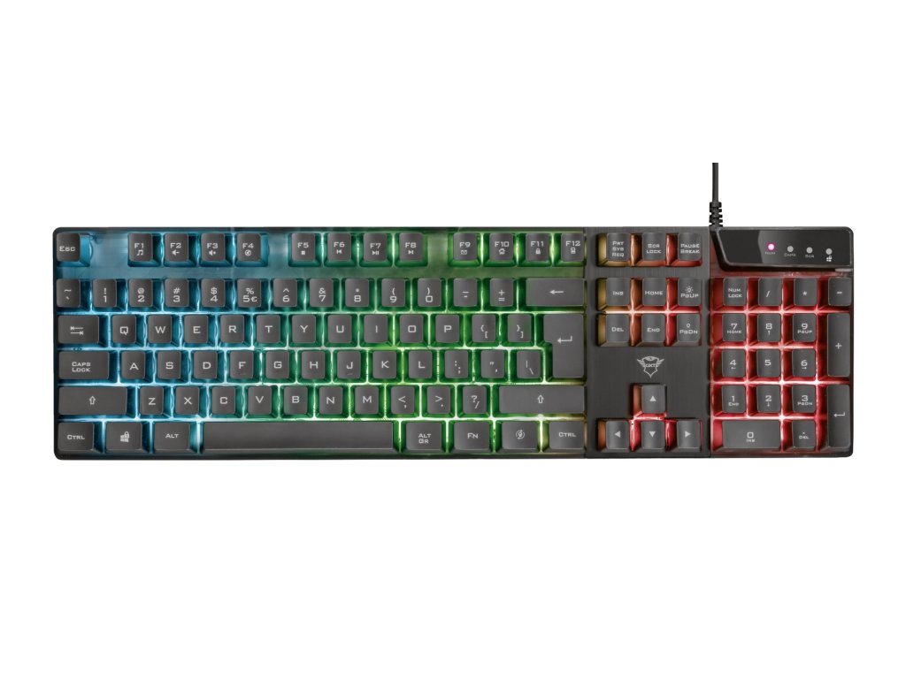 Trust GXT 835 Azor Illuminated Gaming Keyboard. Herní klávesnice plné velikosti s podsvícením. Klávesnice Trust GXT Azor osvětluje vaši cestu k digitálnímu vítězství úžasnými barvami. A díky technologii anti-ghosting a přepínači herních režimů zvládne klávesnice s rozložením v plné velikosti i vaše nejrychlejší hry. Rozjasněte své herní prostředí působivými LED světly. Je možné si vybrat ze tří různých režimů, všechny s nastavitelným jasem, takže najdete ideální nastavení, které odpovídá intenzitě vašich zápasů. Klíčové vlastnosti *Rozložení klávesnice v plné velikosti *3 kombinované barevné režimy LED s nastavitelným jasem *Anti-Ghosting: až 8 současných stisknutí kláves *Přepínač herního režimu, přímo deaktivovat klávesu Windows *Protiskluzové gumové nožičky a výškově nastavitelné 2 stupně *12 multimediálních funkčních kláves Technické parametry *Layout: CZ/SK *Typ připojení: kabelové *Délka kabelu: 180 cm *Typ konektoru: USB-A *Podsvícení: ano *Barvy podsvícení: Duha *Rozměry: 40 x 438 x 125 mm *Hmotnost: 621 g Odkaz na web výrobce: https://www.trust.com/en/product/23651-gxt-835-azor-illuminated-gaming-keyboardDodatočné parametre