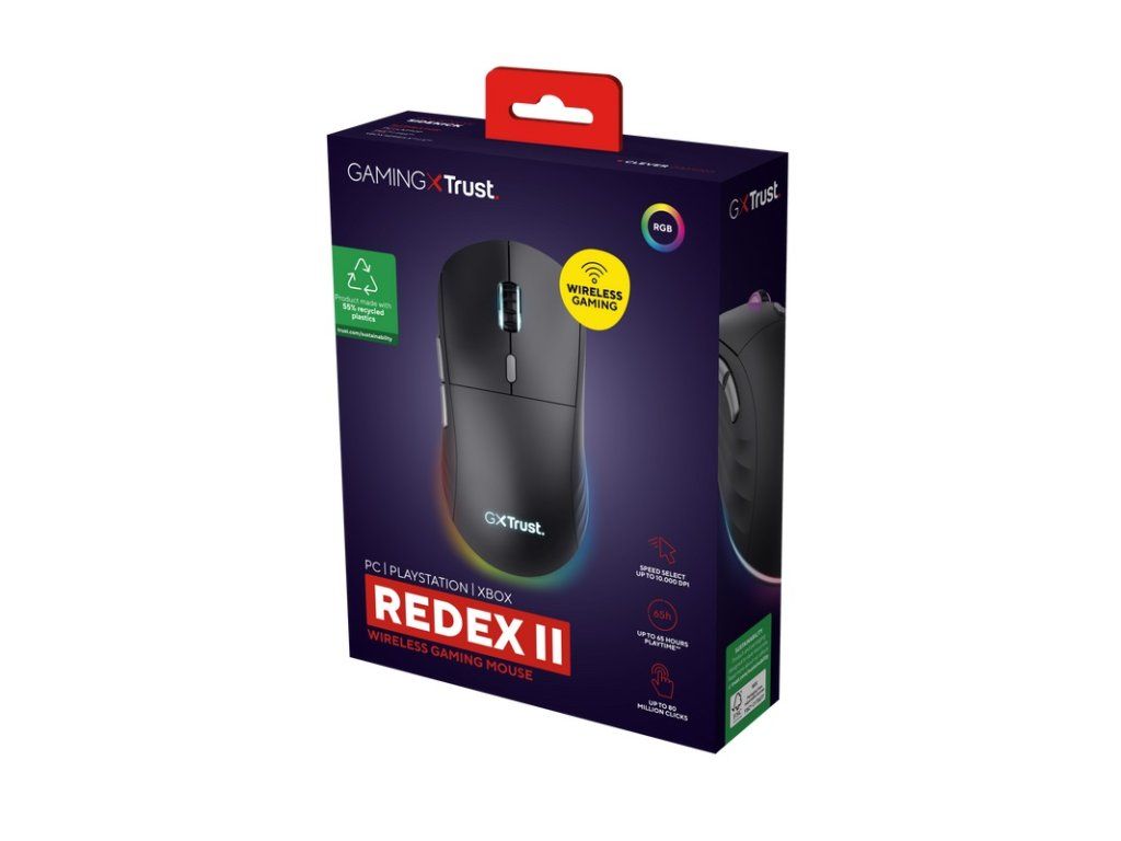 Trust GXT 926 REDEX II/Herná/Laserová/Pre pravákov/10 000 DPI/Drôtová+bezdrôtová/Čierna 25126