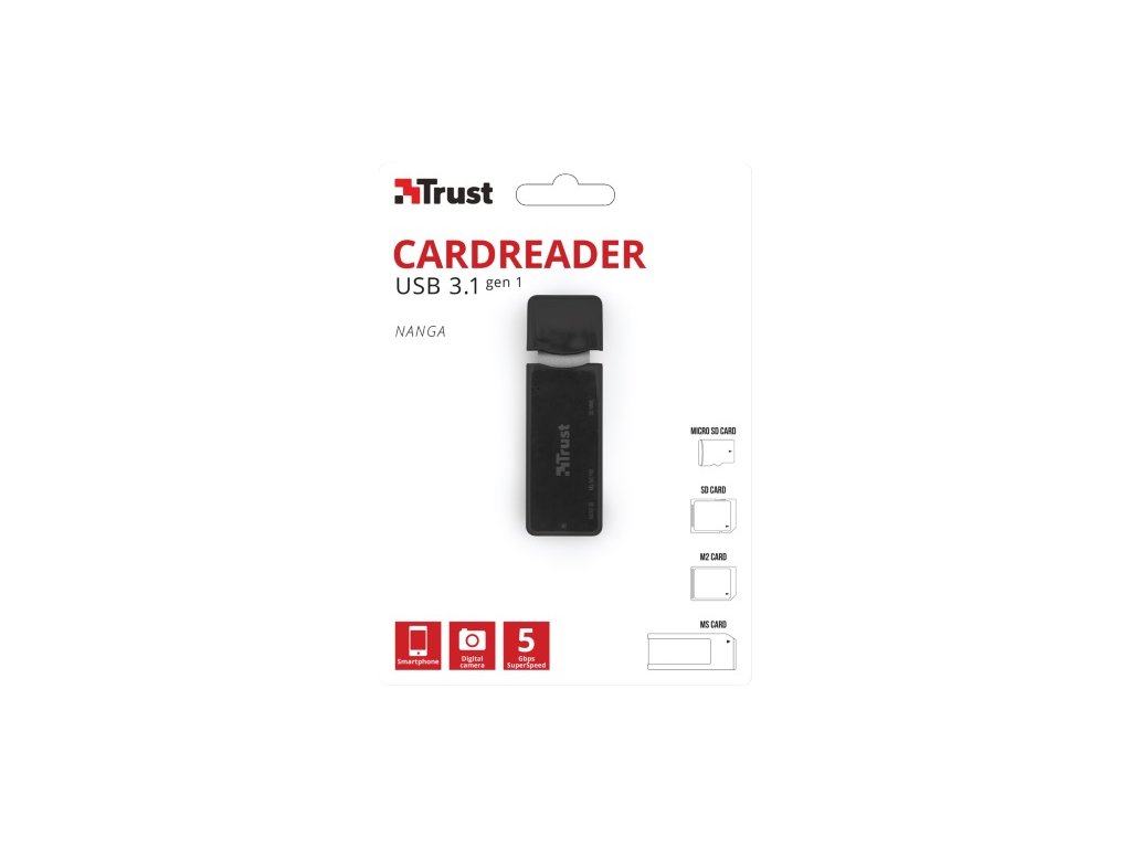 Čtečka paměťových karet USB 3.1, která pracuje se všemi běžnými používanými paměťovými kartami k přenosu obrázků a videí do počítače Podporuje všechny oblíbené paměťové karty kompaktních velikostí z mobilních telefonů a digitálních fotoaparátů Kompaktní, úsporný design, ideální pro přenosné použití Více na webu výrobce: https://www.trust.com/en/product/21935-nanga-usb-3-1-cardreaderDodatočné parametre