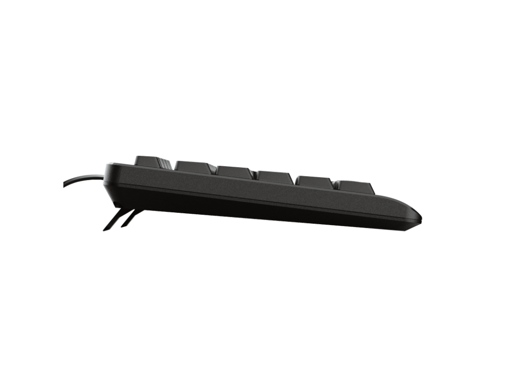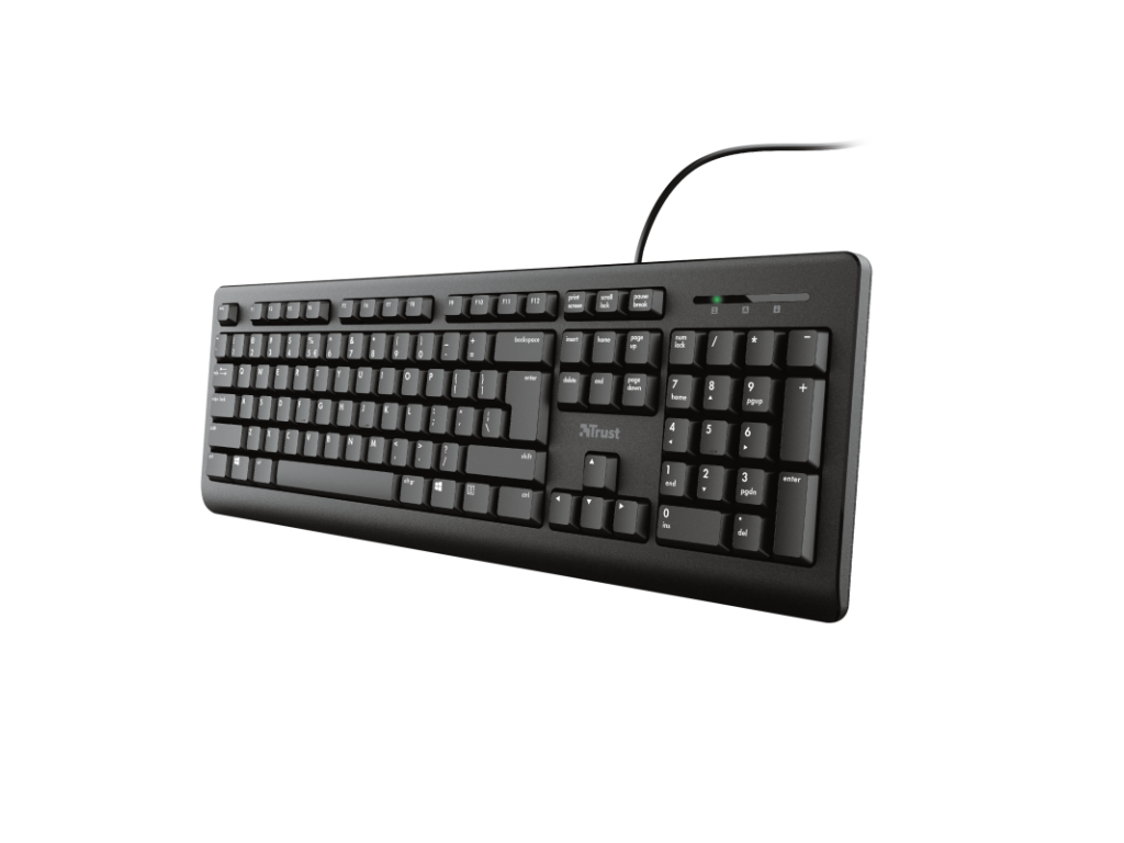 Trust Primo Keyboard klávesnice plné velikosti s tichými klávesami a designem odolným proti polití. Klávesnice přicházejí ve všech tvarech a velikostech, ale co když potřebujete pouze základní funkce? Trust Primo to přesně dělá. Má rozložení v plné velikosti, klávesy odolné proti polití a je výškově nastavitelné. A díky tichým klávesám budete psát celé hodiny, aniž byste obtěžovali své spolupracovníky. Technické parametry *Typ připojení: kabelové *Délka kabelu: 180 cm *USB verze: 2.0 *Typ konektoru: USB-A *Klávesová technologie: membrána *Layout: CZ/SK *Rozměry: 30 x 449 x 148 mm *Hmotnost: 488 gDodatočné parametre