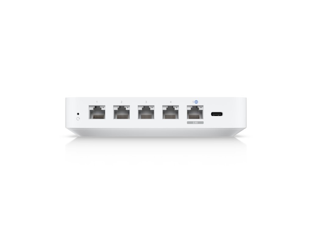 UniFi Cloud Gateway Ultra výkonná a kompaktní multi-WAN UniFi cloudová brána s kompletní sadou pokročilých směrovacích a bezpečnostních funkcí * UniFi Network pro správu sítě * možnost správy 30+ zařízení UniFi Network a 300+ klientů * 0,96'' LCM displej * balení obsahuje patch kabel a napájecí adaptér USB-C (5V/3A) * podpora funkce multi-WAN včetně možnosti load balancing * podpora různých typů VPN, včetně site-to-site VPN * IGMP proxy * podpora IPv6 ISP * detekce hrozeb IPS/IDS na základě podpisu * filtrování obsahu, země, domény a reklam * WiFi QoS s UniFi AP Specifikace Procesor: čtyřjádrový ARM® Cortex®-A53 na 1,5GHz Velikost paměti RAM: 3GB DDR4 Velikost úložiště: 16GB eMMC Rozhraní pro správu: Ethernet, Bluetooth Síťové rozhraní: * LAN: 4x GbE RJ45 * WAN: 1x 1/2,5GbE RJ45 Propustnost IDS/IPS: 1Gb/s Metoda napájení: USB-C (5V DC/3A) Rozsah napětí: 100–240V AC Max. spotřeba energie: 6,2W Provozní teplota: -10 až 40°C Rozměry: 141,8x127,6x30mm Hmotnost: 520gDodatočné parametre