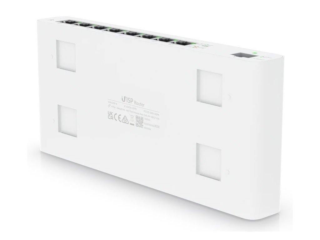 Ubiquiti UISP Router UISP Router je osazen osmi GbE PoE RJ-45 a jedním GbE SFP slotem pro uplink. Celková napájecí PoE kapacita je 110W. Router lze navíc upevnit ke zdi, díky přiloženému držáku. 8x GbE PoE RJ-45 port 1x GbE SFP slot 110W PoE kapacita Fanless - chlazení bez ventilátoru pro tichý provoz Možnost montáže na stěnu (montážní sada je součástí) Snadné nastavení pomocí technologie Bluetooth prostřednictvím mobilní aplikace UISP Součástí balení je DC adaptér 27V/4,4A. ZÁKLADNÍ SPECIFIKACE Procesor: MIPS1004KC, 880MHz, 2jádrový Operační paměť: 512MB DDR3 Interní paměť: 512MB NAND Porty: 8x RJ-45, 1x SFP Podpora PoE: ano, 8x pasivní (110W PoE budget) Technické detaily Použití v interiéru: ano Použití v exteriéru: ne Provedení: samostatně stojící Provedení: na zeď NAND (MB): 512 Provozní teplota max (°C): 50 Provozní teplota min (°C): -10 PoE výstup: pasivní PoE výstup (počet): 8 Procesor: MIPS 1004KC, 880MHz Paměť - velikost paměti (MB): 512 Displej: ne Komunikace Podpora 3G: ne Podpora 4G/LTE: ne Síťová rozhraní LAN: ano Gigabit LAN: ano Wi-Fi: ne Režim router: ano Režim Bridge: ne Režim AP: ne Režim repeater: ne Režim klient: ne Rychlost portů: 1Gb/s Vstupy a výstupy RJ-45 (počet): 8 Rozhraní: LAN, SFP Podpora MicroSD karet: ne Napájení Podpora POE: ano Spotřeba (W): 10 Napájení (V): 24-28 (DC) Napájení max (jack) (V): 28 Napájení min (jack) (V): 24 Podpora Slot pro SIM: ne Fyzické vlastnosti Barva: bílá Hmotnost (g): 600 Rozměry: 210,4x95x29mm Váhová kategorie: Lehký - do 2kg Další výbava a vlastnosti Shoda: CE, FCC, ICDodatočné parametre
