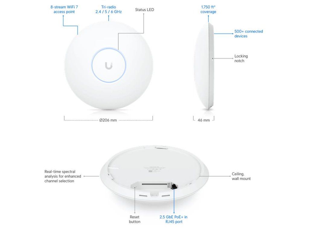 Ubiquiti UniFi AP 7 Pro MAX WiFi7 (688/8600/5765Mbps) U7-PRO-MAX