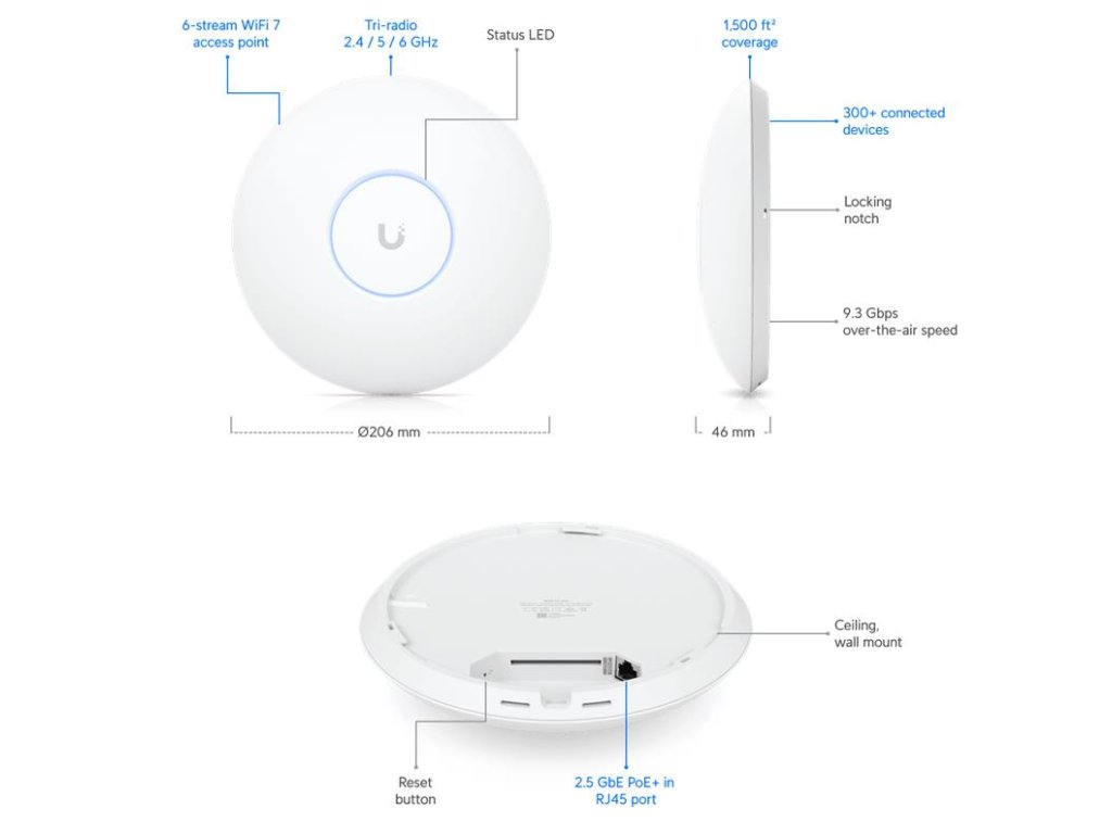Ubiquiti UniFi AP 7 Pro WiFi7 (688/2882/5765Mbps) U7-PRO