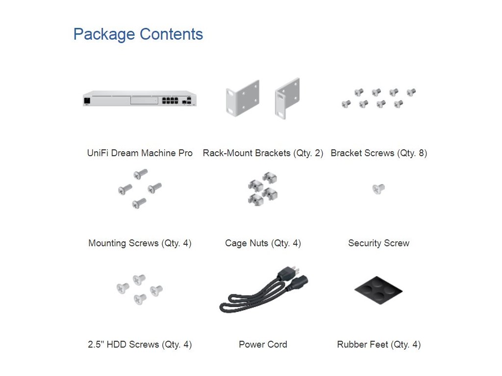 UniFi Dream Machine Pro (UDM-Pro) kombinuje pokročilé bezpečnostní funkce s vysokým výkonem routování/přepínání a sjednocuje tak router, bezpečnostní bránu a switch. Toto zařízení podporuje všechny aplikace UniFi pro správu všech UniFi zařízení (tj. UniFi Network, UniFi Protect, UniFi Access, UniFi Talk a UniFi Connect). UDM-Pro je ideální pro malé a střední firmy, které požadují spolehlivý router/switch s managementem v profesionálním provedení určený pro montáž do racku 1U. UniFi Dream Machine Pro je ALL IN ONE řešení, které obsahuje: