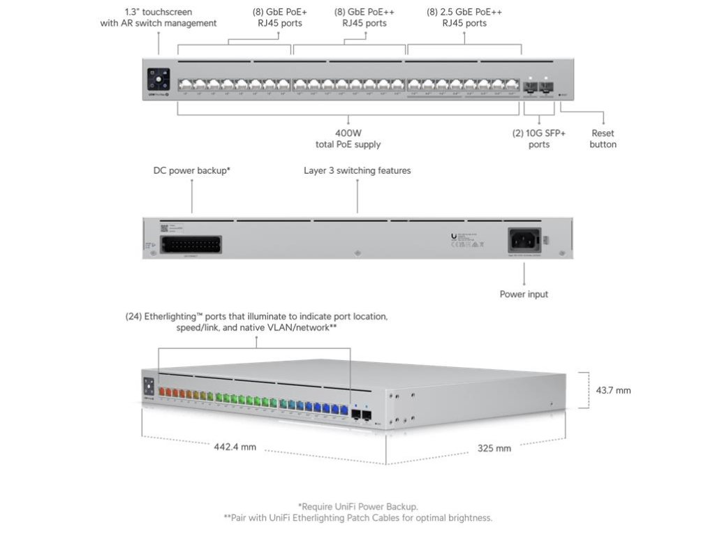 Ubiquiti UniFi switch Gen2 USW-PRO-MAX-24-POE Layer3 16x 1Gbps 8x 2,5Gbps + 2x SFP+ POE++ (400W) USW-PRO-MAX-24-POE