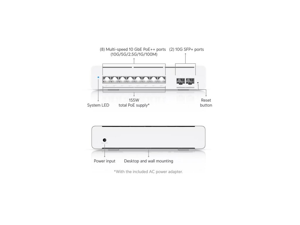 8× 10GbE RJ45 (100M/1G/2.5G/5G/10G)