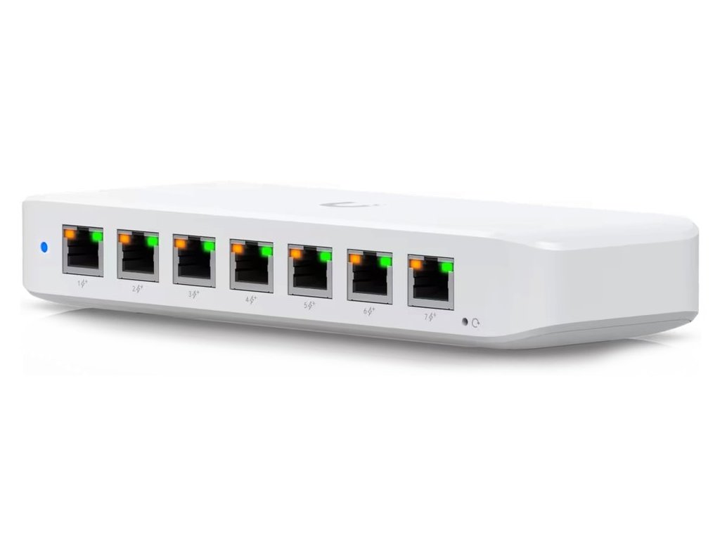 Ubiquiti UniFi Switch UltraUniFi Switch Ultra je osazen sedmi výstupními GbE PoE+ RJ-45 porty a jedním vstupním GbE PoE++ RJ-45 portem. Jedná se o L2 switch s celkovou kapacitou 16 Gbps, neblokovanou propustností 8 Gbps a PoE budgetem až 202 W (v závislosti na typu napájení). Switch lze napájet buď přes DC konektor (54 V DC), nebo přes PoE++ (802.3at/bt) vstup na zadní straně. Díky přiloženému držáku jej lze snadno upevnit na stěnu.