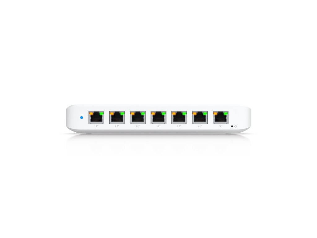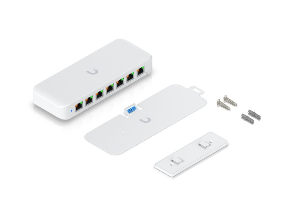 UniFi Switch Ultra kompaktní 8portový GbE PoE switch * maximální PoE budget switche je závislý na způsobu napájení * 1x PoE In a 7x PoE Out s podporou PoE napájení 802.3af/at s maximálním zatížením až 30W na port Technické parametry Rozhraní pro správu: Ethernet In-Band Síťové rozhraní: 8x GbE RJ45 PoE rozhraní: 7x PoE/PoE+ (piny 1, 2+, 3, 6-) Celková neblokující propustnost: 8Gb/s Kapacita switche: 16Gb/s Způsob napájení: PoE++ (piny 1, 2+, 3, 6- a 4, 5+, 7, 8-) Zdroj napájení: 54V, externí, 1,1A/60W Podporovaný rozsah napětí: 44-57V DC Max. spotřeba energie: 9W se vstupem PoE (bez PoE výstupu) Max. PoE+ výkon na port: 30W Rozměry: 203x76x33mm Hmotnost * zařízení: 320g * držák: 45gDodatočné parametre