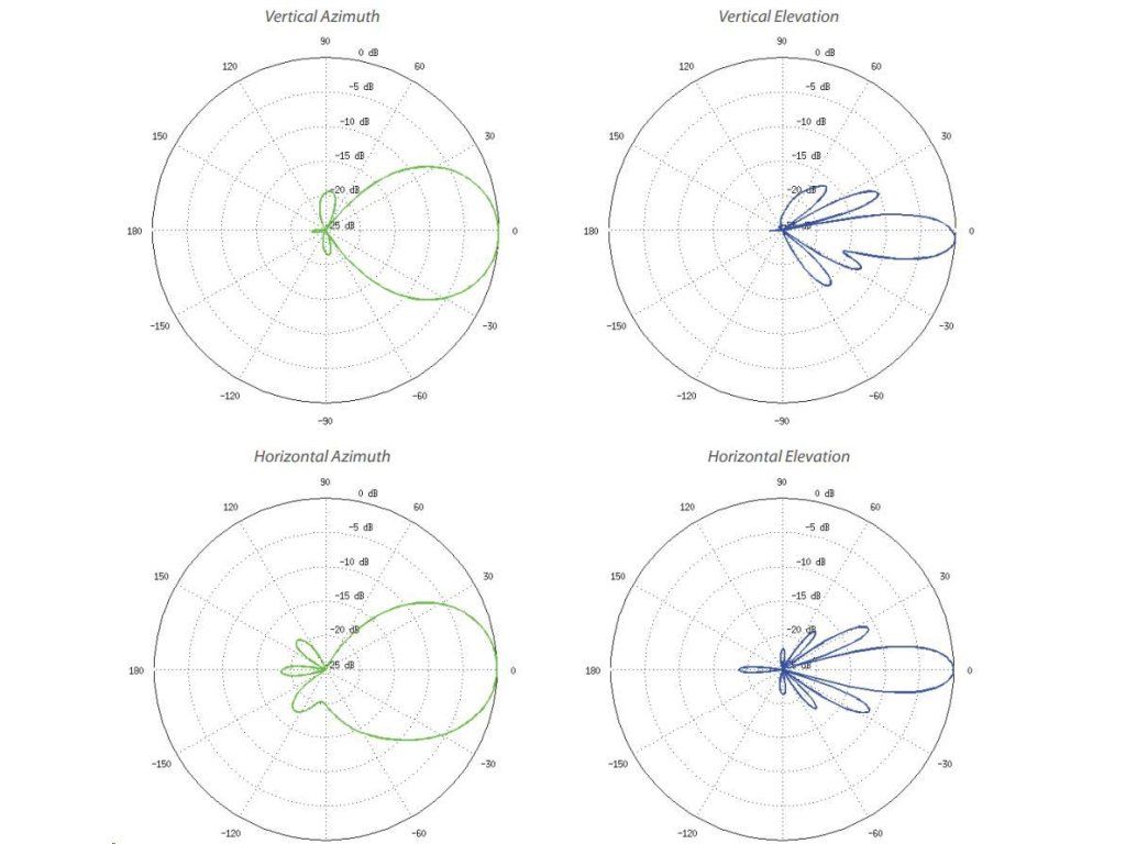 Šírka lúča 45° (H-pol) / 45° (V-pol) / 45° (elevácia)