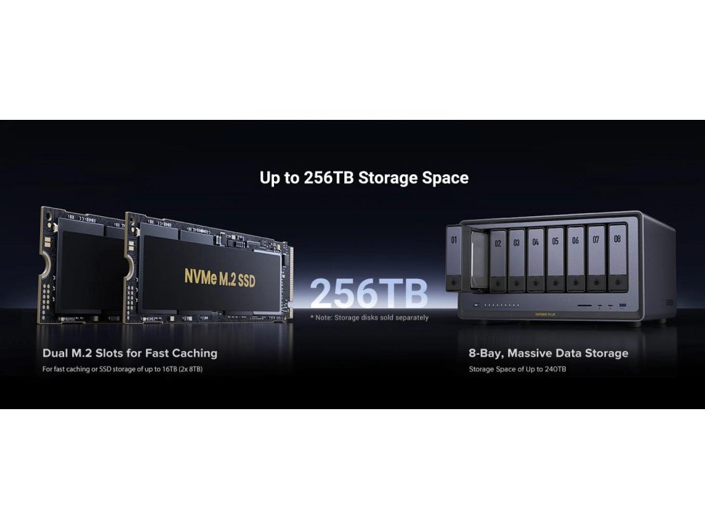 | Maximálna kapacita úložiska | 256TB (8x 30TB + 2x 8TB) |