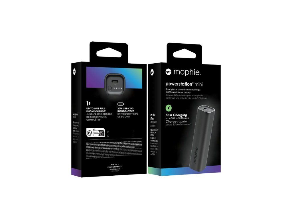 Mophie Powerstation Mini – kompaktní energie na cesty Powerstation Mini je kapesní záchrana s kapacitou 5 000 mAh , která vám poskytne dostatek energie pro až jedno plné nabití telefonu . Díky USB-C portu s výkonem až 20 W a podporou Power Delivery nabijete svůj iPhone 15 Pro na 50 % za pouhých 30 minut . Tento praktický pomocník nabízí až 28 hodin přehrávání videa , 2 hodiny streamování nebo 88 hodin poslechu hudby . Jediný USB-C port slouží jak pro nabíjení zařízení, tak pro dobíjení samotné powerbanky. Kompaktní rozměry zajišťují, že se pohodlně vejde do kapsy nebo tašky, a součástí balení je 9palcový USB-C silikonový kabel . Klíčové vlastnosti Kapacita 5 000 mAh – až jedno plné nabití telefonu. USB-C PD port s výkonem 20 W pro rychlé nabíjení. Nabíjení iPhonu na 50 % za 30 minut . Kompaktní velikost – ideální na cesty. USB-C kabel součástí balení. 2letá záruka.Dodatočné parametre